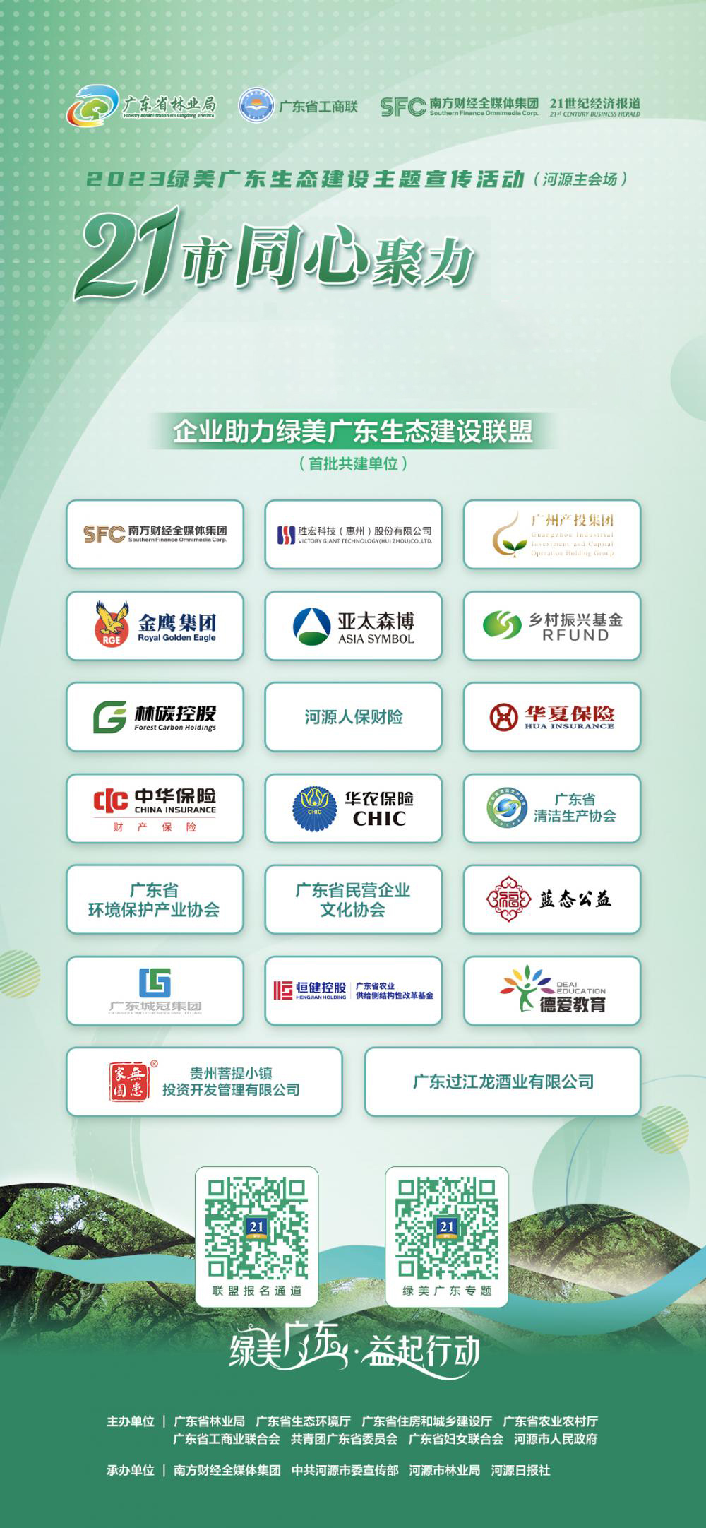 活动期间,由南方财经全媒体集团发起和组织的“企业助力绿美广东生态建设联盟”正式启动成立(以下简称“联盟”)。jiuyou.com九游科技作为首批共建单位,与相关领导、其他金融机构、企业代表、媒体等共同参与启动仪式,并向社会各界发出号召,通过联盟平台,以多种方式积极投身“绿美广东”生态建设当中。